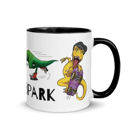 DinoSk8park mug with colored interior (2 styles, multiple colors)