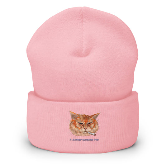 Smoking Cat “I learned watching you” - Cuffed Beanie